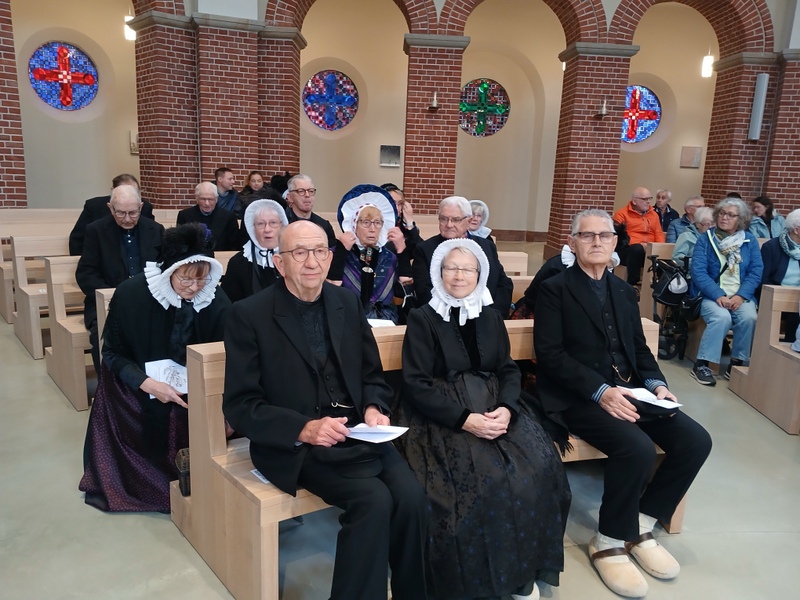 Noch etwas zu diesem „Karkdeenst“ Am 5. Oktober 2025 fand in der Pfarrkirche St. Augustinus in Nordhorn ein ökumenischer Karkdeenst up Platt statt, zu dem der Groafschupper Plattproater Kring eingeladen hatte. Der Gottesdienst begann um 15:00 Uhr und stand ganz im Zeichen des Erntedankfestes. Gestaltet wurde der plattdeutsche Gottesdienst von Pastor Santel und Pastor Wiggers sowie weiteren Mitgliedern der Kirchengemeinden. Henni Boermann, Vorsitzende des Groafschupper Plattproater Krings, begrüßte die zahlreichen Besucherinnen und Besucher in der Kirche. Nach dem Gottesdienst gab es noch eine gemütliche Zusammenkunft bei einer Tasse Kaffee, bei der viele die Gelegenheit nutzten, sich auszutauschen und das gesellige Beisammensein zu genießen. Die ökumenischen plattdeutschen Gottesdienste haben beim Groafschupper Plattproater Kring bereits Tradition. Seit vielen Jahren finden sie an wechselnden Orten in der Grafschaft statt und erfreuen sich großer Beliebtheit bei Mitgliedern aller Kirchengemeinden und Konfessionen.